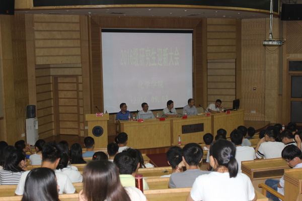 9月3日晚,图书馆一报告厅热情洋溢,化学院2016级研究生迎新大会在这里隆重举行。全体2016级博士、硕士研究生新生参加迎新大会。诸侯快讯ok1122科技处处长费俊杰教授、ok1122诸侯快讯院领导、新生班主任、各学位点负责人、研究生思政办公室老师出席会议。