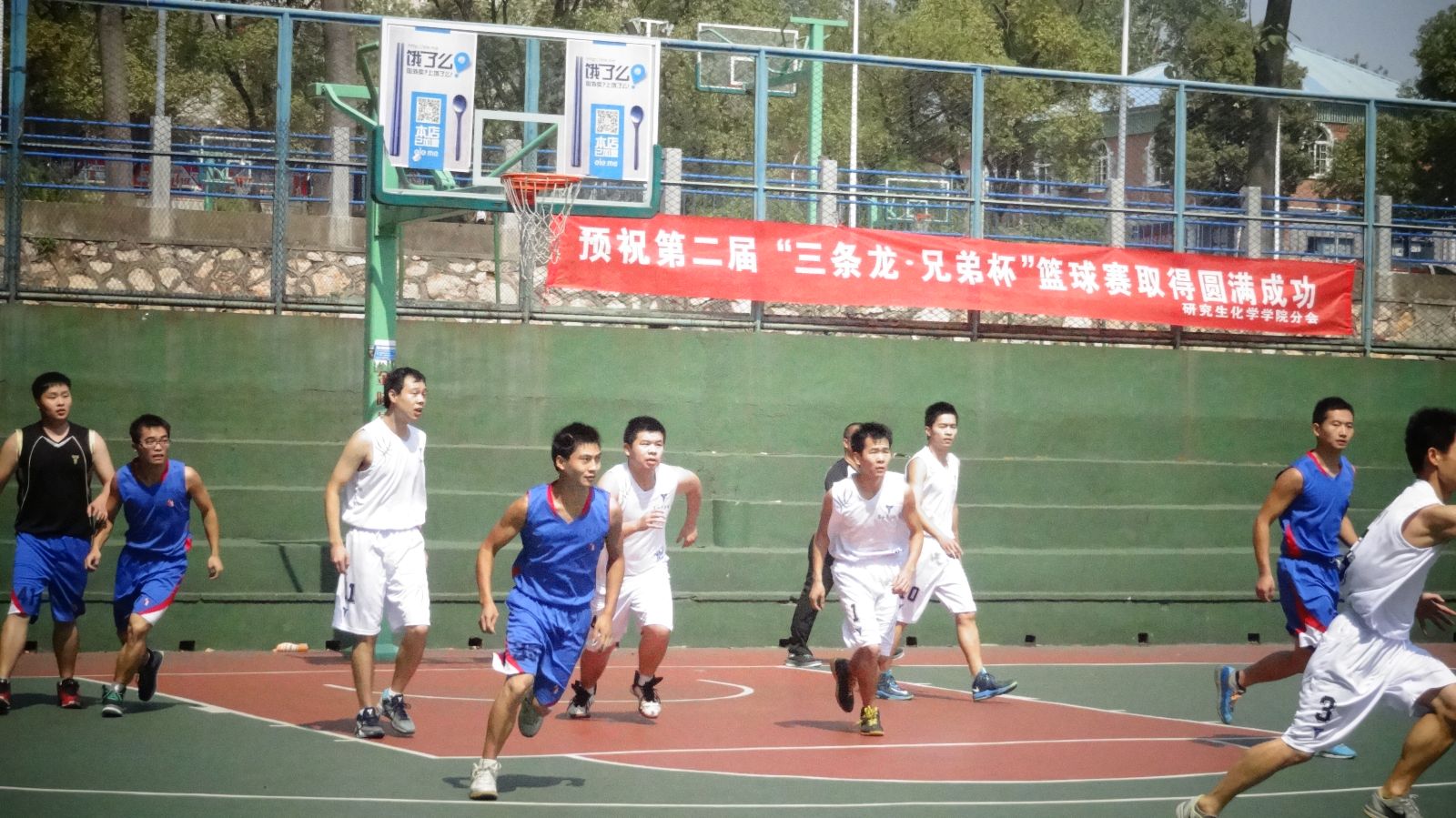10月8号中午12点30分,化学院研究生第二届“三条龙•兄弟杯”篮球赛在南苑球场拉开帷幕。本届篮球赛共有五支队伍,分别是塑料队、合成队、有机光电队、无机队、新能源队。第一天比赛是合成队VS塑料队和无机队VS新能源队。刘稳丰书记和研究生思政干事秦治军老师莅临现场,并分别为比赛开球。