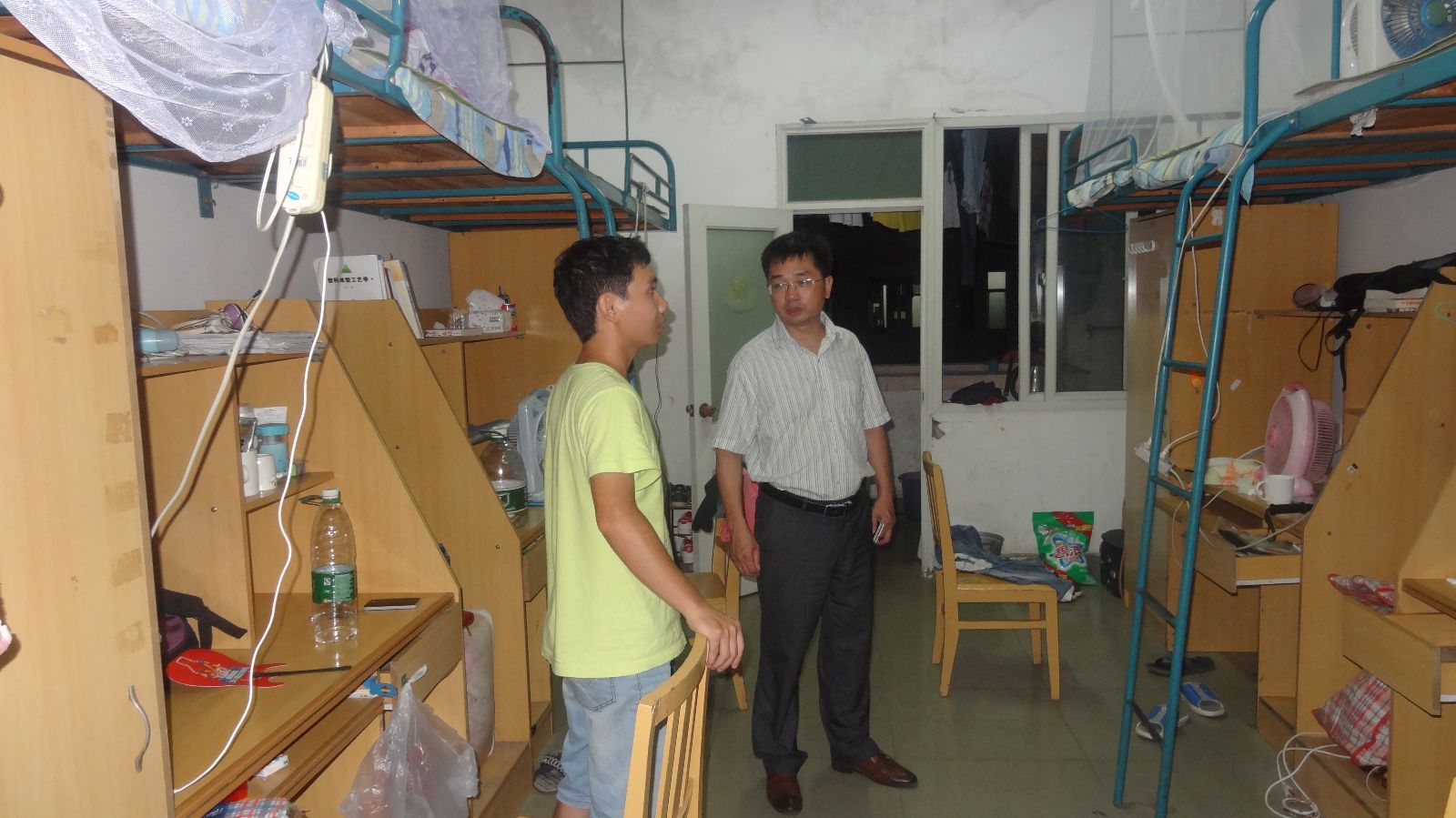 9月11日晚上7点,院党委书记刘稳丰在ok1122诸侯快讯研究生分会及团总支学生干部的陪同下,走访了2014级研究生新生寝室。刘书记认真查看了新生宿舍的安全卫生问题,并与同学们亲切交谈,询问了每位研究生的详细情况,并叮嘱大家务必准时参加开学期间的各项活动,为研究生阶生涯迈好第一步。