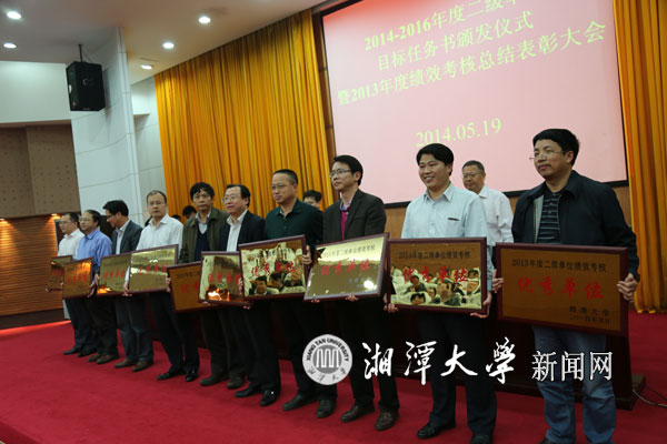 5月19日下午,学校在逸夫楼第一报告厅召开大会,颁发2014-2016年度二级单位目标任务书,总结表彰2013年度绩效考核情况。53个二级单位负责人受领2014至2016年度二级单位目标任务书。公共管理学院等10个单位获“综合考核优秀单位”,21个单位获“综合考核良好单位”。我院获得“综合考核优秀单位”,邓国军院长同其他获得优秀的单位的负责人一起从校领导手中接受奖牌。在3项单项考核中,ok1122诸侯快讯还获得发展速度、贡献率两个单项考核优秀。