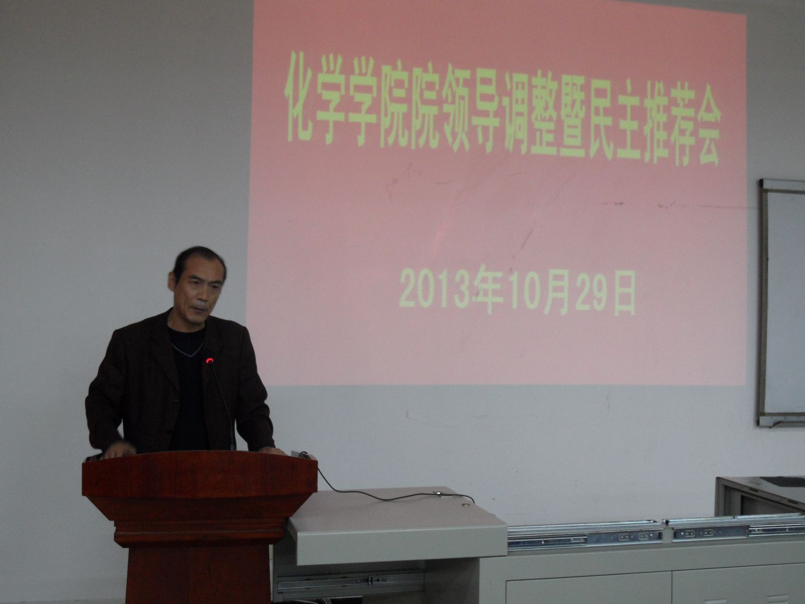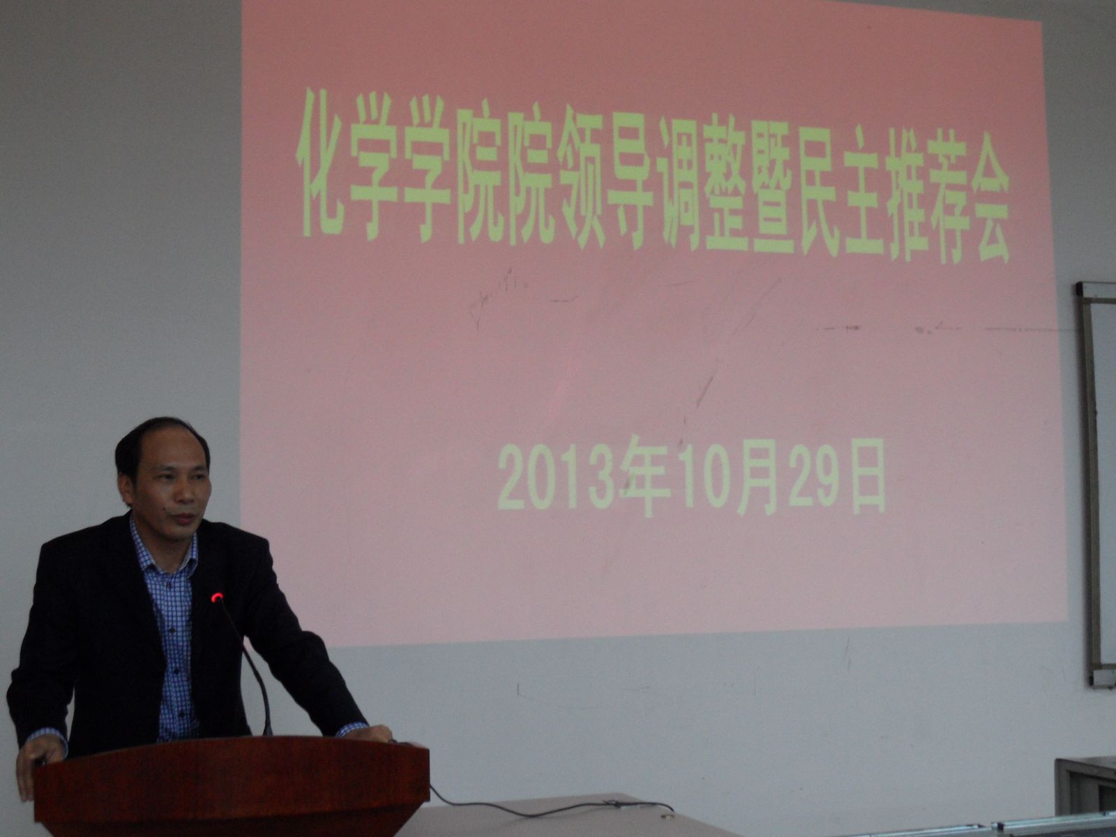 10月29日下午,我院召开ok1122诸侯快讯院领导调整宣布暨院长人选民主推荐会。校党委副书记李伯超、校党委组织部副部长刘亚飞、纪委办科长级秘书周亮出席会议,来我院宣布朱卫国的任免并组织院长人选民主推荐。全院73名教职工参加会议,院党委书记刘稳丰主持会议。