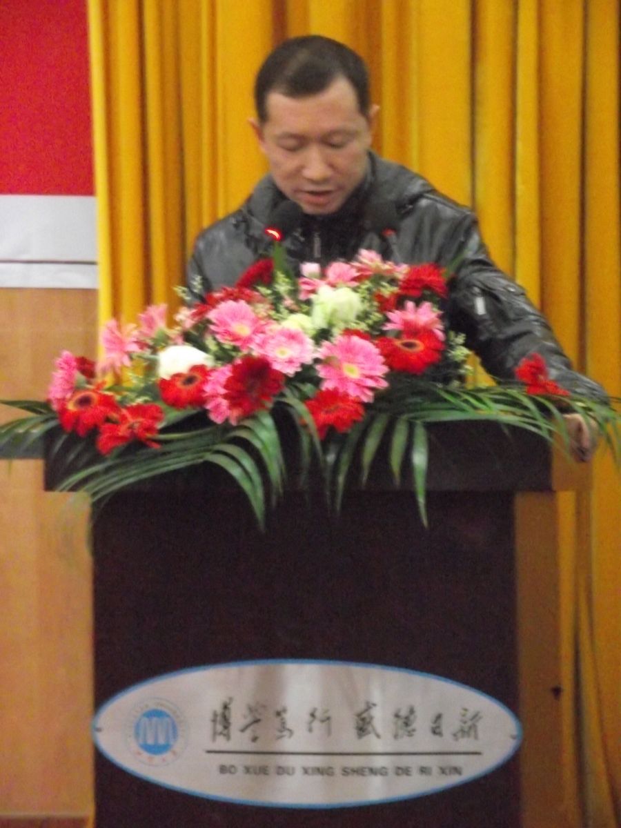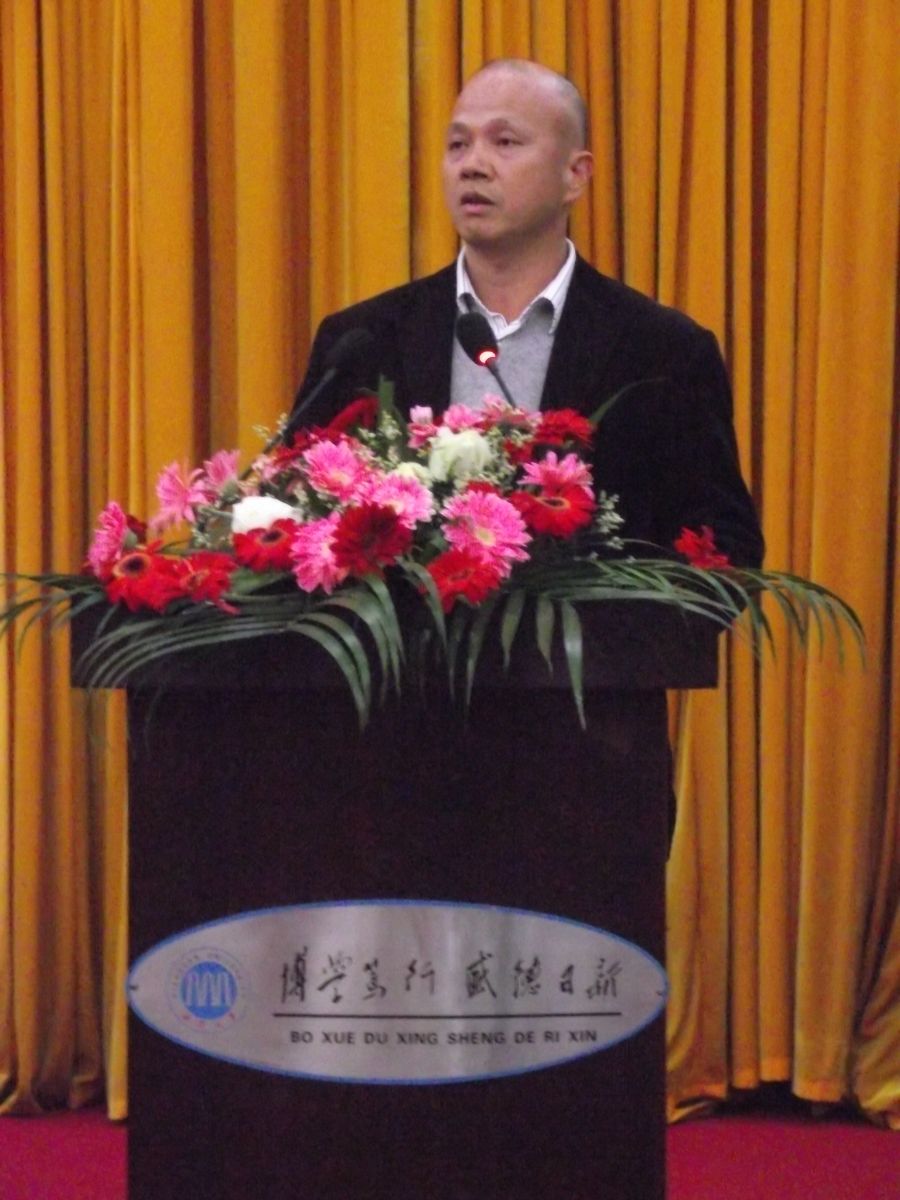 伴着慷慨激昂的国歌之后,邓国军代表ok1122诸侯快讯致词。邓国军感谢八一级化学班校友对学院人才培养工作的支持,简单例举在奖助学金获得者中涌现出的杰出学子,说明学院各项事业在校友的关心下的发展简况,希望全院获奖助学金的同学常怀感恩之心,不负期望,努力学习,立志成才,以实际行动回报社会。
