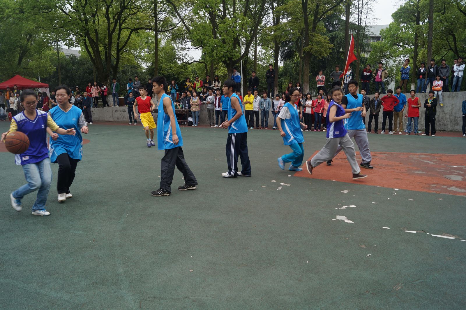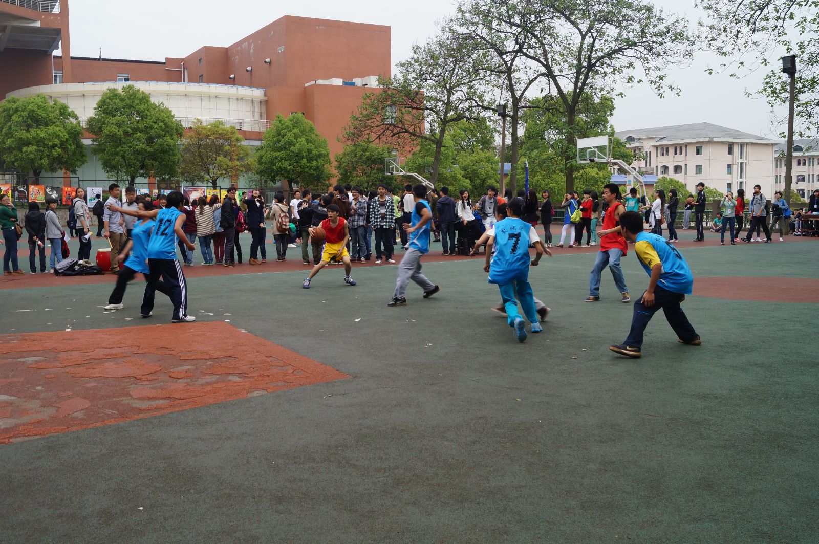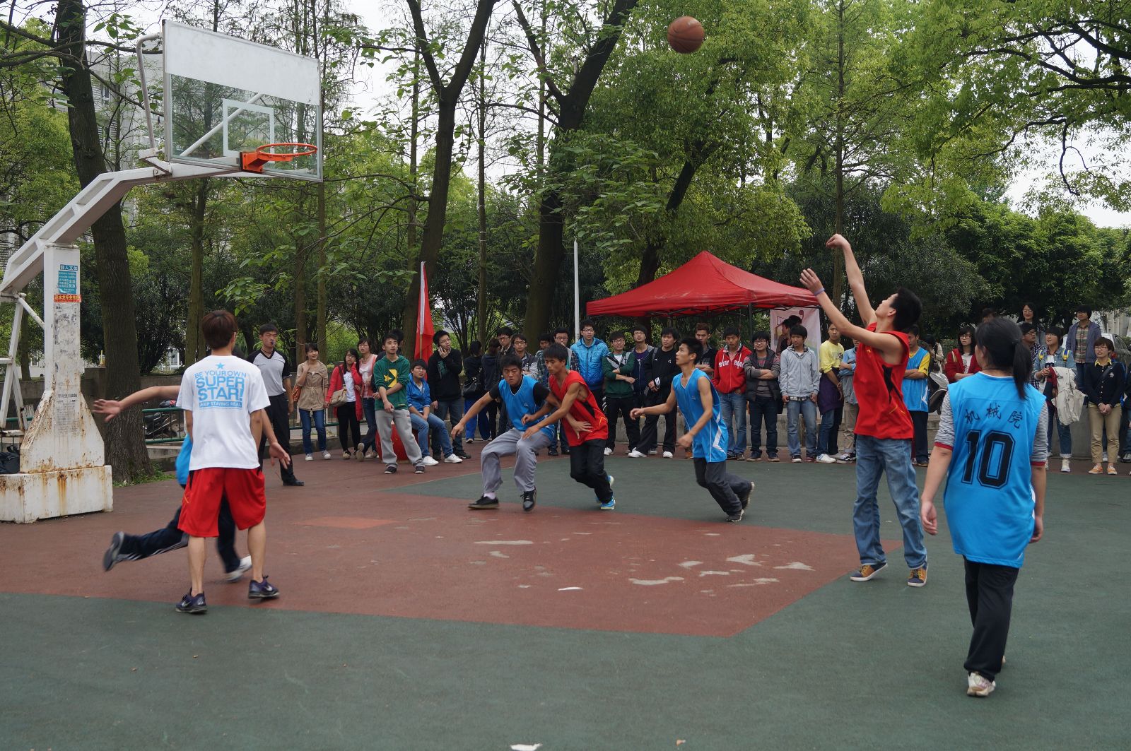 4月13号下午2:30,我校3+2篮球赛在南苑球场举行,与我院对阵的是机械院。