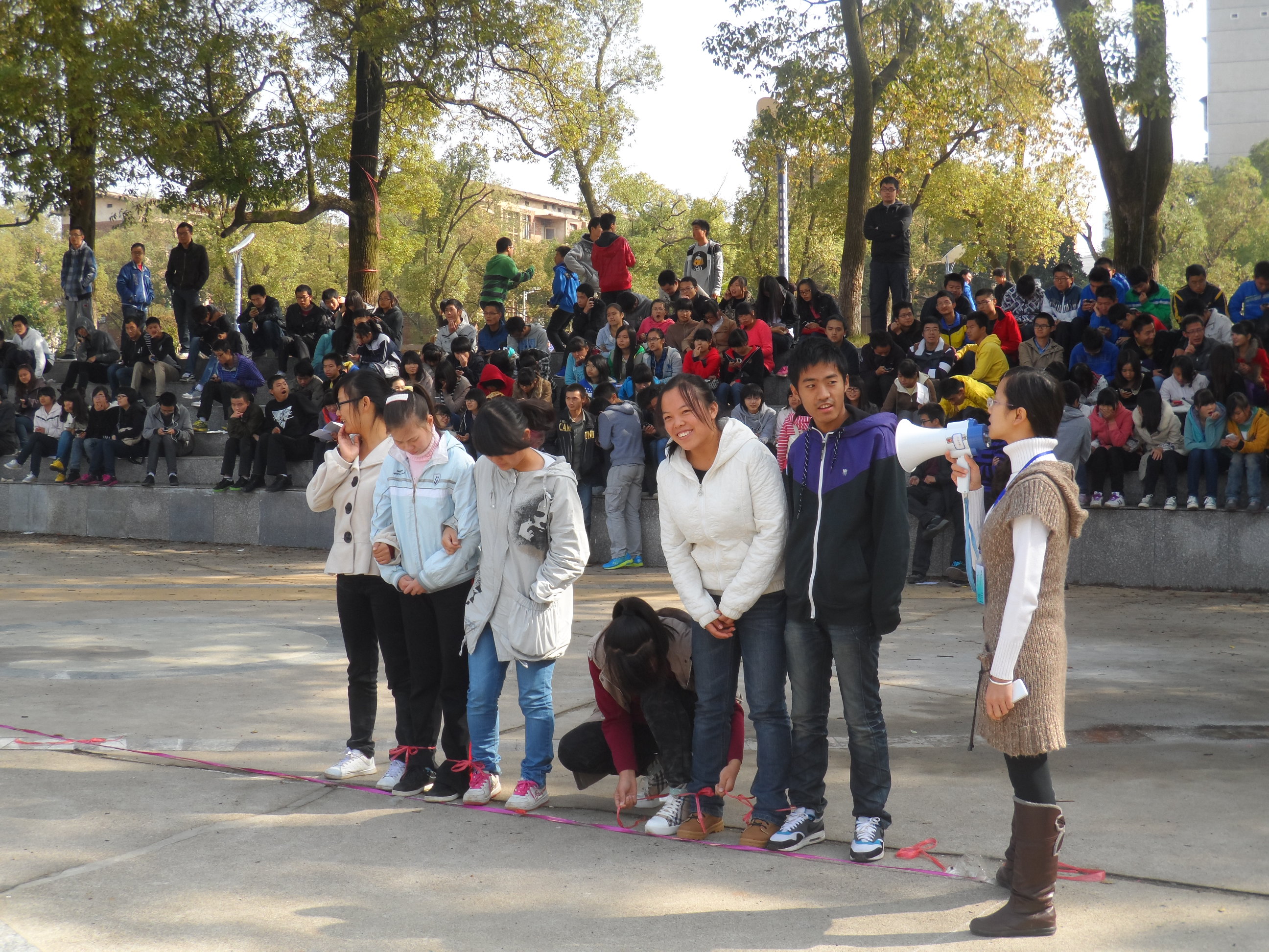 11月11日上午,2012 级新生团校课素质拓展活动在第一田径场火热展开。