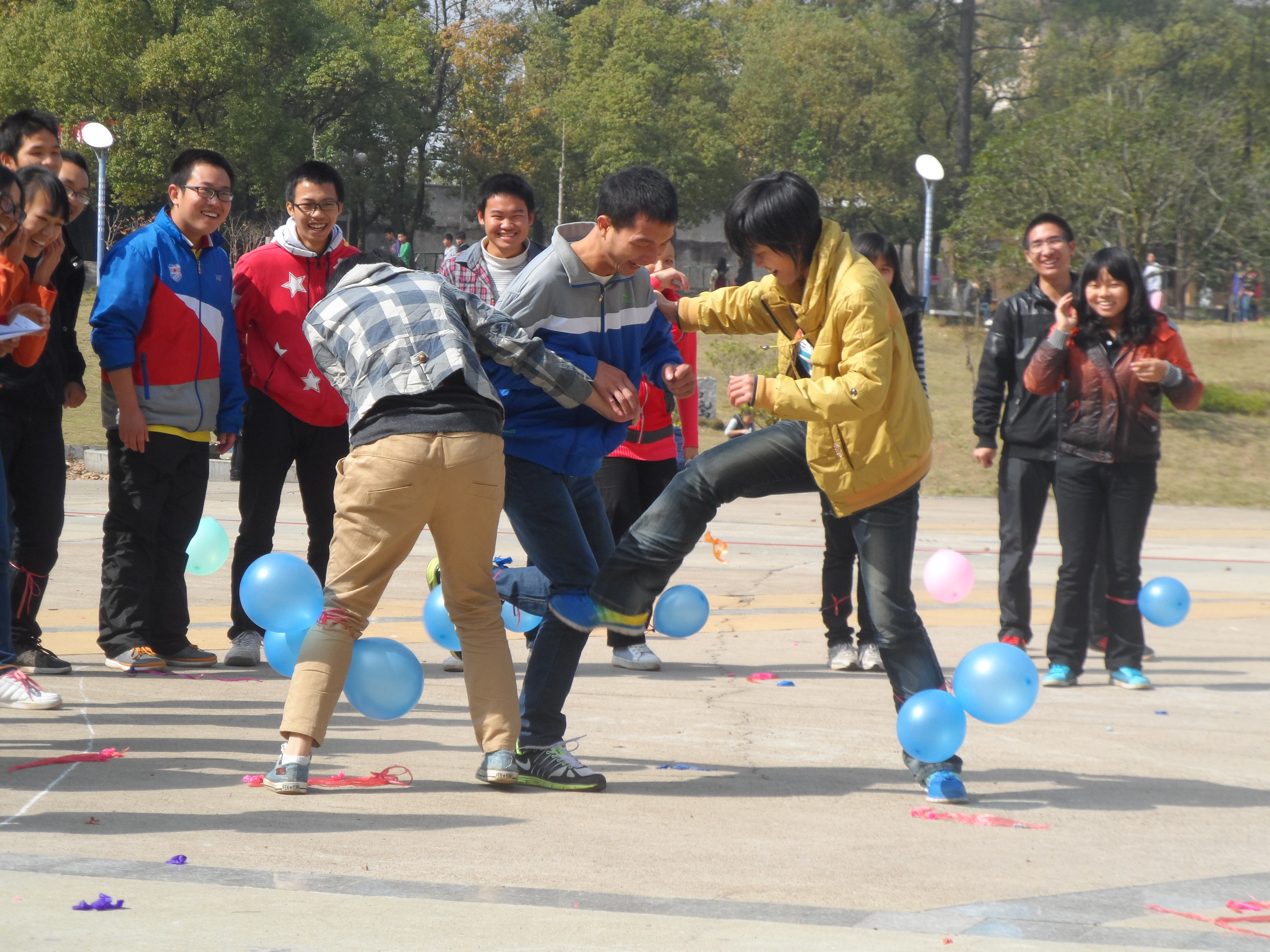 这次素质拓展活动由ok1122诸侯快讯团委学生会组织部主持展开。整个活动中都洋溢着轻松欢快的气氛。在同学们的热切期盼中,开始了第一项活动――椅子“渡河”。这项活动看似简单,实则既需要体力又考验速度和技巧。各班参赛同学都尽自己最大的努力争取在最短的时间内到达“河对岸”。大家争先恐后,紧张不断,精彩不断。场上的比赛紧张刺激,未参赛的同学也在看台上为比赛的同学加油鼓劲,热烈的呼喊声充斥着一田的每一个角落。之后又相继进行了“七手八脚”“三人四足”“踩气球”等一些经典有趣的游戏。最后每个人都带着愉快的心情离开了田径场。