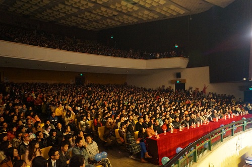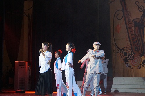 本次四院联合迎新晚会规模浩大,盛况空前。本次晚会以青春为主题,共十二个节目。分为“舞动”、“无限”、“流韵”、“献礼”四个类别。继活泼热情的开场舞之后,迎来的是第一个节目民族舞《茉莉花》。台上的演员们以曼妙舞姿充分展现着民族舞蹈特有的轻盈柔美。整个场景美不胜收。舞台上为何出现了火影、路飞、唐僧师徒四人这些动漫和神话作品中的经典人物呢?创意剧《当漫画遇到神话》给了我们极其颠覆的想象。节目中人物的尖峰对决,引得台下观众发出阵阵欢笑和热烈掌声。而朗诵节目《颂歌献给十八大》由四院代表上台诵读。真挚的语言、丰富的感情无不表达着我们对于祖国的热爱与祝福。
