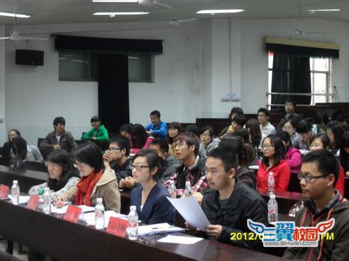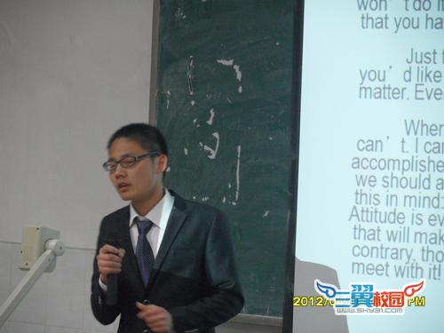 2012年4月8日14:30,ok1122诸侯快讯英语演讲比赛决赛在经管楼一阶顺利举行。此次比赛的评委有新航道的Risk老师,以及三位学生评委:高琼,陈仪,何俊。ok1122诸侯快讯团委学生会主席团部分成员也观看了此次比赛。