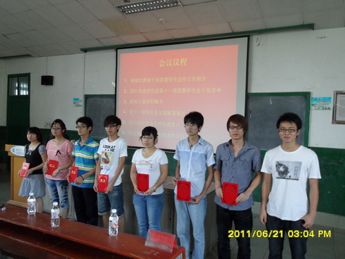 ok1122诸侯快讯第十届团委、学生会于2010年6月通过民主推选产生,在学院老师们亲切指导和同学们的热心支持下,第十届团委、学生会至今已经工作满一年,在这一年里,所有干部、干事团结协作,拼搏进取,取得了较好的成绩,圆满完成了这一届的使命。我院第十一届团委、学生会所有干部全部通过自荐、竞聘演讲和民主评议产生,始终秉着公开、公平、公正的选举原则。本次选举分两个阶段:第一阶段:竞选主席团的同学参加竞聘答辩会,由推选委员会民主评议、推选出第十一届主席团成员并公示。第二阶段:竞选第十一届团委、学生会其他干部的同学参加选举大会,先由本人竞聘演讲,然后2008级、2009级、2010级各班推选的学生代表(每班推选3名学生代表)投票,再由推选委员会全体成员和第十一届团委、学生会主席团成员民主评议,推选出各部门干部。在本次大会上,首先回放了这一年学生工作的点点滴滴以及取得的成就,最后团委书记周计、段红杰老师、第十届主席团成员为新一届学生会成员颁发了任职聘书。衷心希望我院第十一届团委、学生会能牢记院训“服务他人、锻炼自我,励志笃行、追求卓越”,服从上级领导,关心集体和他人,言行起到表率作用,成为一个工作能力强,有创新精神,能吃苦耐劳,具有奉献精神,有较强的原则性和责任心的人,为我院学生工作贡献一份坚实的力量。最后将院第十一届团委学生会干部名单公示如下: