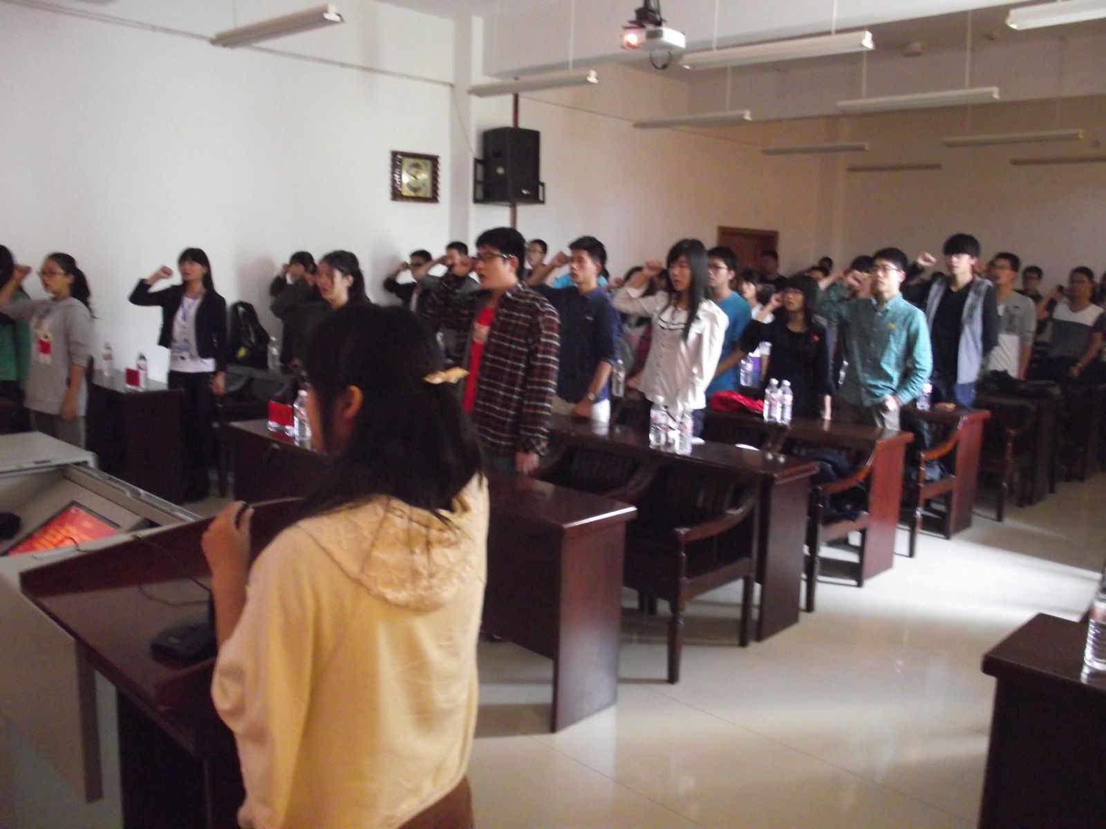 启动仪式在《青年志愿者之歌》中拉开帷幕。紧接着由周计老师致辞,总结了青志队取得的成绩并表达院里对支教活动的大力支持,鼓励并赞扬了甘愿奉献自我的志愿者们,同时也鞭策我们要以志愿者的心态对待支教这件事。之后,由我院优秀志愿者方晓明发言,讲述了她在支教活动中的真实经历和亲身感受以及在支教活动中总结出的人生感悟。“人应该有一个梦想,又一个理由去坚强,心若没有栖息的地方,到哪里都是流浪。”随后,播放的暖心的支教支教短片向我们呈现了青志队在支教过程中的感人瞬间,吸引了所有志愿者的目光,在他们心中种下了奉献爱心改变未来的种子。最后,由学生会团委第一副书记王微带领着全体志愿者,郑重地举起右手,做出庄严的宣誓。至此,本次活动圆满结束。