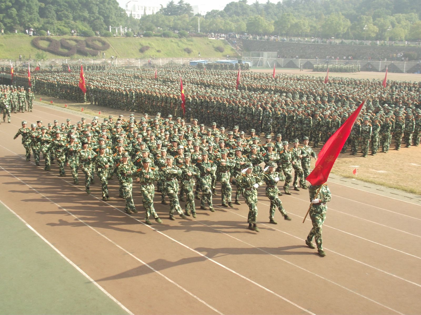 10月12号上午,我校2013全体新生军训阅兵式在第二田径场隆重举行。